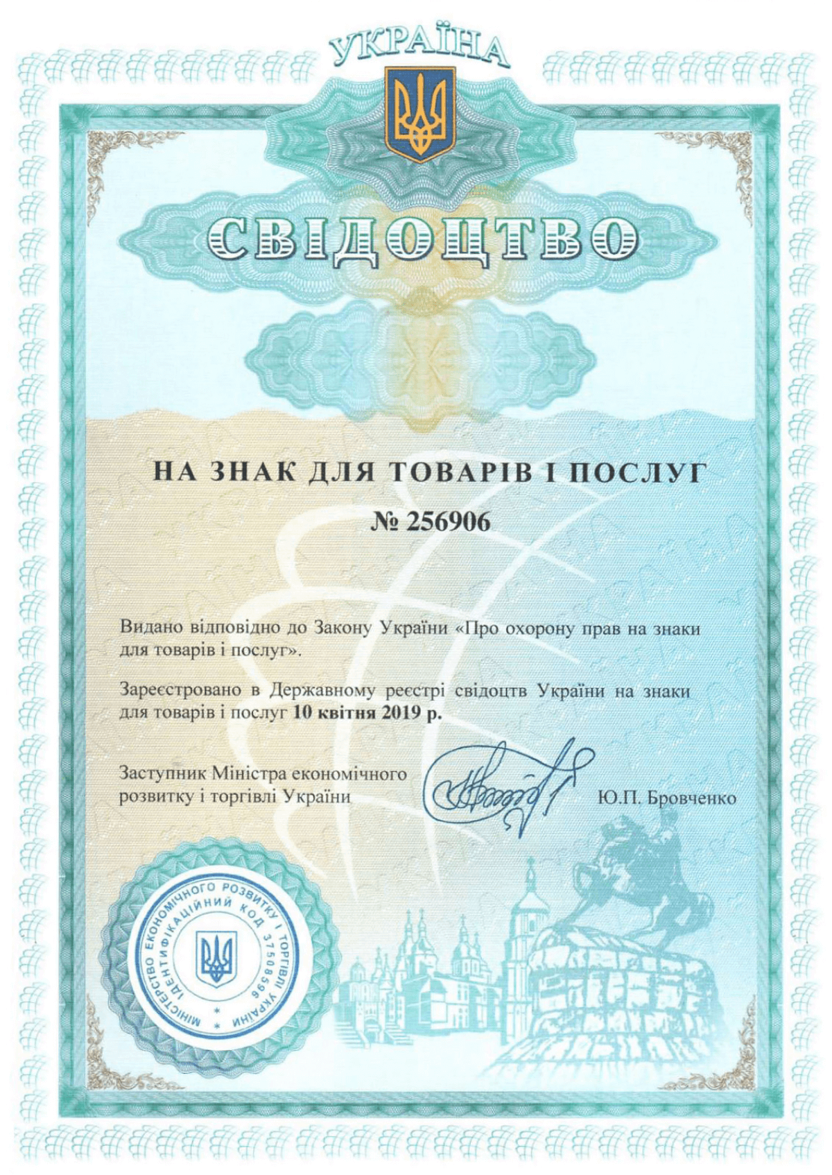 Свидетельство о регистрации торговой марки